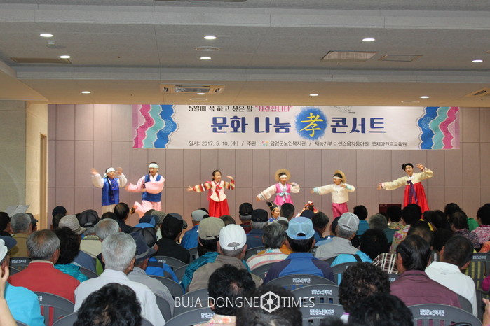 담양군노인복지관(관장 이동오)은 가정의 달을 맞아 10일 지역 어르신, 봉사자 등 400여 명이 참석한 가운데 '문화나눔 효(孝) 콘서트' 및 '자장면 나눔' 행사를 개최했다.