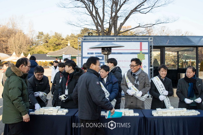 [부자동네타임즈 신동현 기자]한국마사회(회장 김낙순) 렛츠런파크 서울에서 지난 5일(토) 신년맞이 고객 사은행사를 개최했다. 홍대유 조교사협회장, 서인석 조교사, 황순도 기수협회장, 이기회 기수부협회장 및 한국마사회 임직원 등 총 60명이 새해 첫 경마 경주를 기념해 선착순 5,000명의 고객에게 백설기 떡을 나눠주었다. 브라스밴드와 말 인형 퍼포먼스로 축제 분위기가 고조되었다.