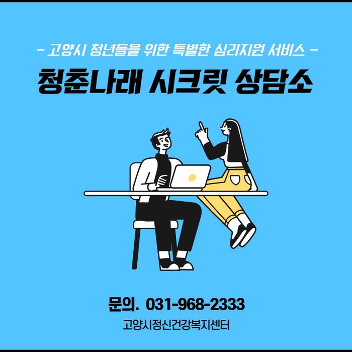 ‘시크릿 상담소’는 고양시 청년들을 대상으로 국민건강보험공단 일산병원 정신건강의학과와 연계해 임상심리사가 진행하는 무료 상담 서비스이다.