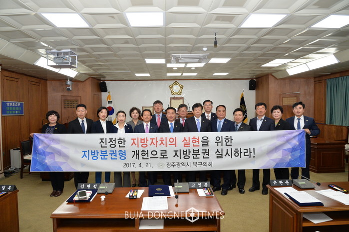 | △광주 북구의회는 21일 제232회 임시회 제2차 봄회의에서「지방자치와 지방분권 실현을 위한 결의안」을 채택했다 |
