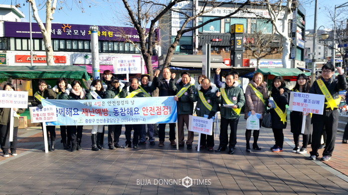 [부자동네타임즈 이병도 기자]중랑구(구청장 나진구)는 지난 10일 ‘제250차 안전점검의 날’을 맞아 시민안전의식 개선을 위한 ‘겨울철 한파·화재 및 설 명절 안전사고 예방’ 캠페인을 실시했다고 밝혔다.