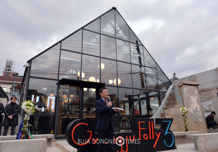 윤장현 광주광역시장이 10일 오후 동구 산수동에 들어선 광주폴리 3차 프로젝트 쿡(COOK) 폴리 개막식에 참석해 인사말을 했다.
