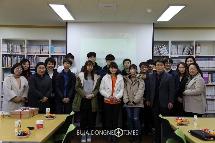 | △'돈돈혜(沌沌兮)'는 회원 20명과 일반학생 봉사자 30여 명이 만든 점자 도서 52권을 12월 28일 시각장애 특수학교인 광주세광학교에 전달했다 |