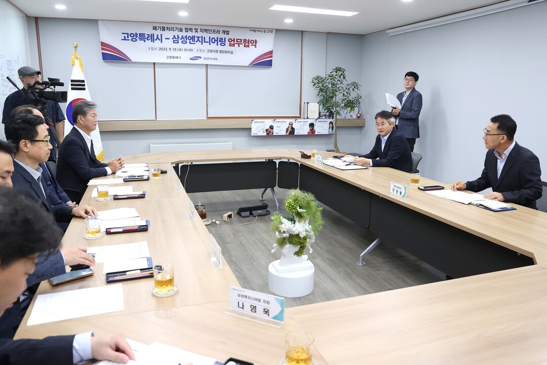 [부자동네타임즈 = 김인수 기자] 고양특례시가 설비(플랜트) 분야에서 종합 해결책(솔루션)을 제공하는 전문기업인 삼성엔지니어링과 지난 13일 시청 열린시장실에서 업무협약을 체결했다.