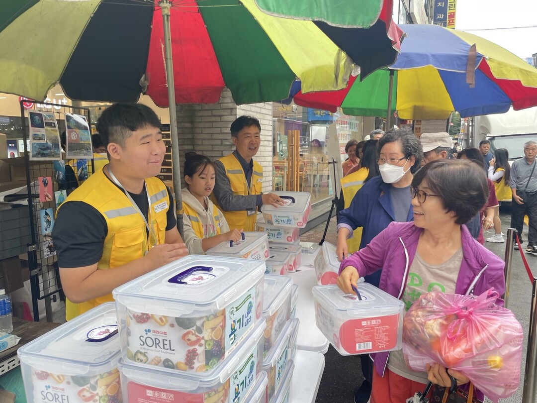 “추석맞이 장 볼 때 비닐봉투 대신 다회용기 사용하세요” 고양시 청소년, 다회용기 사용 캠페인.