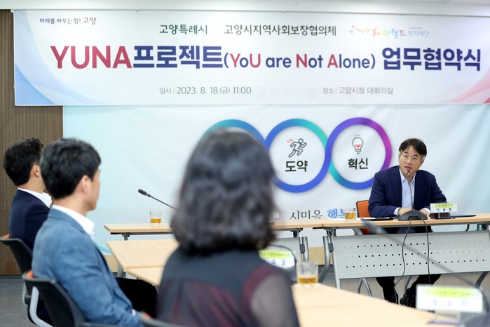 [부자동네타임즈 김인수기자] 고양시지역사회보장협의체는 지난 18일 고양시청 대회의실에서 사회복지법인 해피월드복지재단(이사장 정성진)과 저소득 위기가구의 긴급지원을 위한‘유나(YUNA) 프로젝트’ 업무협약을 체결했다.