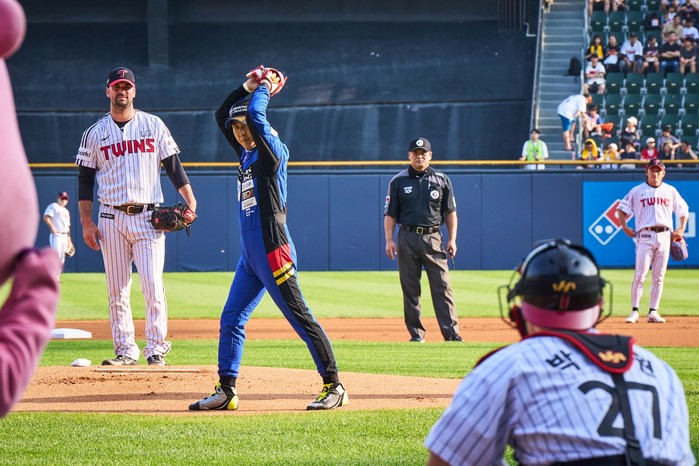 이날 시구 이벤트의 등장은 강렬했다. 오한솔이 대회에 실제 참가 중인 레이싱카를 직접 운전해서 입장했고, 잠실야구장을 강력한 엔진 소리로 가득 채웠다. 이외에도 레이싱카 및 드라이버 슈트의 화려한 비주얼은 현장 관람객의 이목을 끌기에 충분했다.