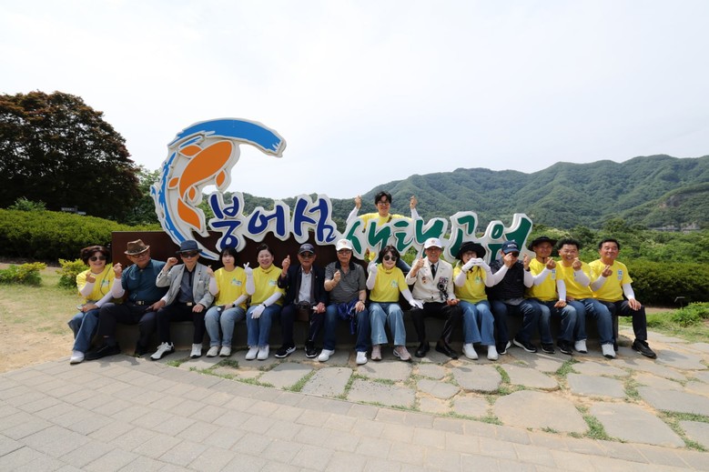 지난 10일 신천지자원봉사단과 국가 유공자들이 붕어섬 탐방하며 소통의 시간을 가지고 있다.