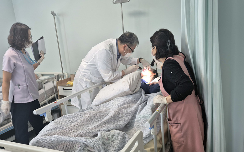| ▲ (관련사진)과천시가 시립요양원 입소자를 대상으로 구강검진을 하는 모습 |