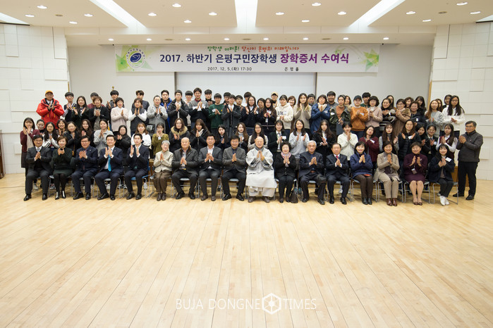 [부자동네타임즈 이병도 기자]재단법인 은평구민장학재단(이사장 서병진)은 12월 5일 은평구청 은평홀에서 120여 명의 학생과 학부모, 재단 임원들이 참석한 가운데 『2017. 하반기 은평구민장학생 장학증서 수여식』을 가졌다.