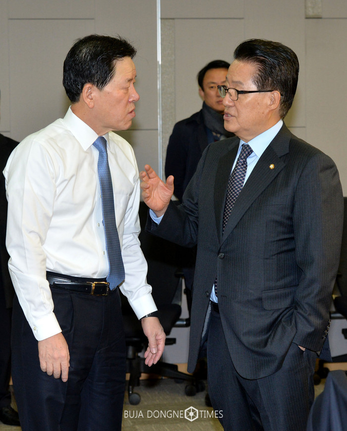 20일 오전 서울 여의도 국회 의원회관에서 열린 국민의당 2017년 국민의당 제2차 정책강화 워크숍에 참석한 박지원(오른쪽) 대표와 주승용 원내대표가 대화를 하고 있다. 2017.01.20.