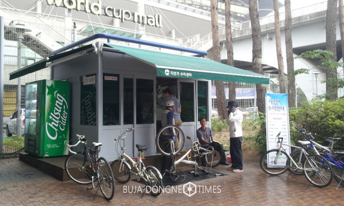 마포구 ‘자전거 수리센터’는 월드컵경기장 남문 자전거토탈서비스 센터 내 위치해 있다. 사용 중이거나 고장 난 자전거를 수리센터에 가져가면 전문 수리 기사가 자전거를 수리해준다. 마포구민뿐만 아니라 주소지에 관계없이 누구나 이용 가능하다.
