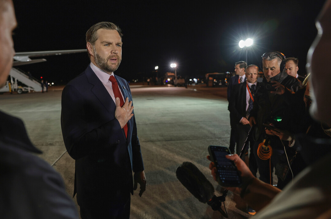 취재진과 대화하는 JD 밴스 미국 부통령