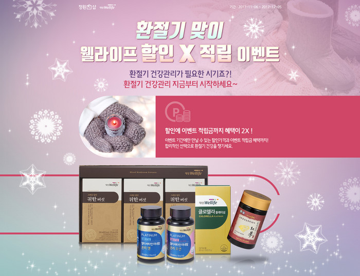 [부자동네타임즈 김현정 기자]대상㈜ 통합 온라인몰 정원e샵에서 내달 5일까지 건강기능식품 브랜드 대상웰라이프 기획전을 진행, 환절기 건강관리를 위한 제품을 할인 판매한다.