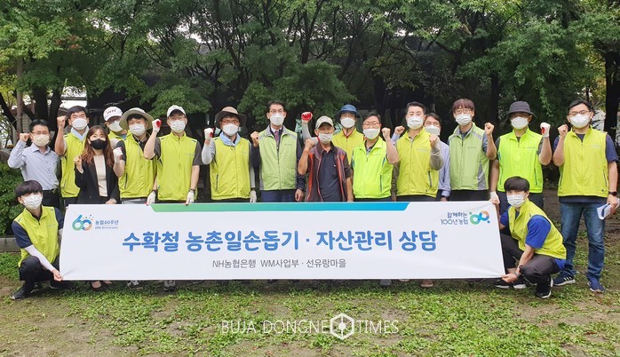 [부자동네타임즈 이현재 기자]NH농협은행은 지난 6일 가을 수확철 인력 수급에 어려움을 겪고 있는 농가를 찾아 일손돕기와 자산관리 상담을 실시했다고 8일 밝혔다.
