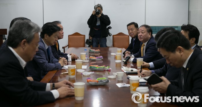 (서울=포커스뉴스) 9일 오전 서울 여의도 국회 의원회관에서 열린 야권 대통합을 위한 구당모임 회의에 참석한 새정치민주연합 비주류 의원들이 현안 관련 논의를 하고 있다.