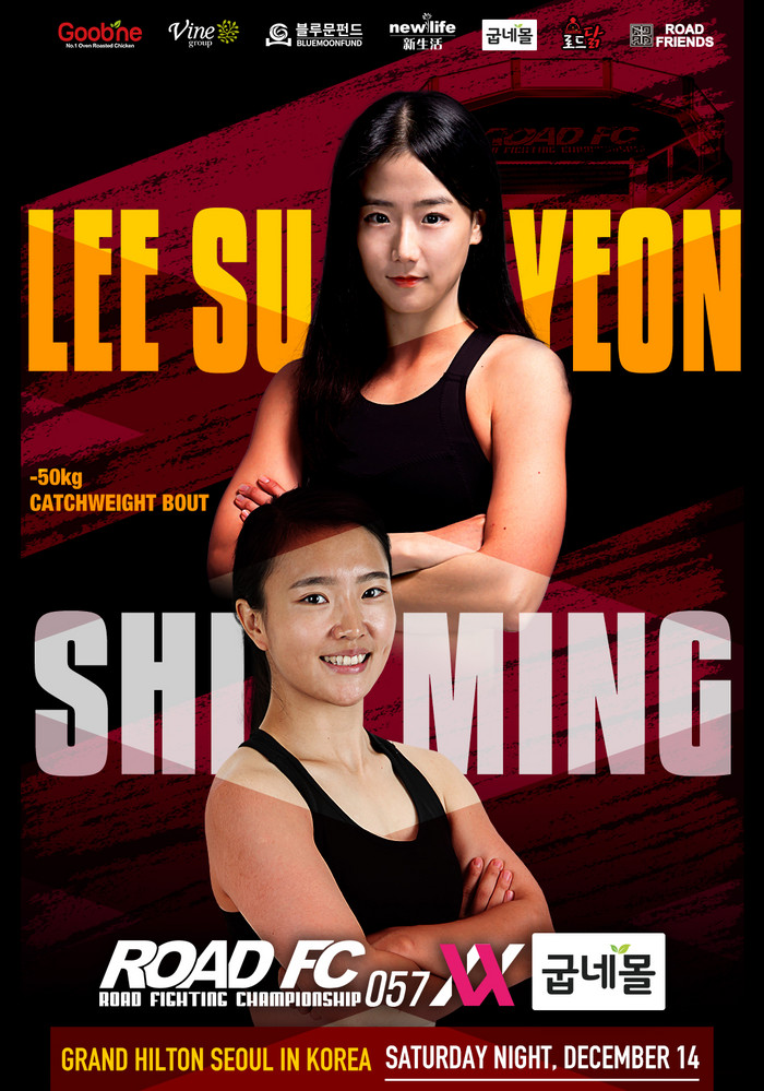 [부자동네타임즈 김인수기자] 이수연은 12월 14일 그랜드 힐튼 서울에서 개최되는 굽네몰 ROAD FC 057 XX에서 중국 격투 여동생’ 스밍(25, JING WU MEN JU LE BU)과 대결한다.