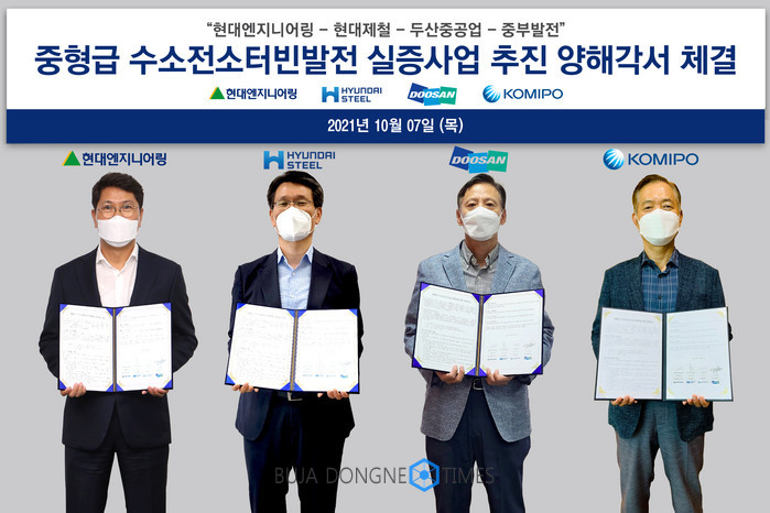 [부자동네타임즈 이세제 기자]현대엔지니어링·현대제철·두산중공업·중부발전 4개사가 수소 기반 전력생산 기술 확보를 목표로 수소전소(全燒)터빈 발전 실증사업을 추진한다.