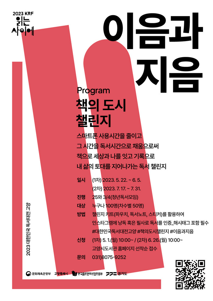 프로그램은 누구나 참가 할 수 있으며 1차 챌린지 접수는 5월 1일 오전 10시부터 고양시도서관센터 홈페이지에서 선착순으로 모집한다.