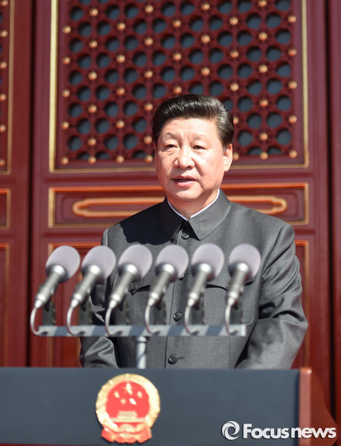 | △ (베이징/중국=신화/포커스뉴스) 지난 9월 3일 시진핑 중국 국가주석이 텐안먼 성루에서 ' 항일전쟁 승리 및 반 파시스트 전쟁 승리 70주년 기념 열병식' 기념 연설을 하고 있다. 신화/포커스뉴스 photo@focus.kr |