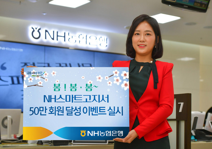 [부자동네타임즈 이현재 기자]NH농협은행(은행장 이대훈)은 ‘NH스마트고지서’ 가 출시 1년여 만에 50만 회원을 돌파하고 신규 서비스(아파트관리비, NH농협생명) 출시를 기념해 봄.봄.봄. 이벤트를 실시한다고 11일 밝혔다.