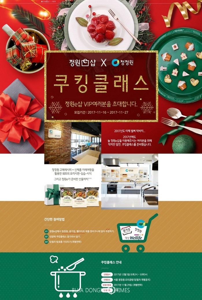 [부자동네타임즈 김현정 기자]대상㈜ 청정원이 통합 온라인몰 정원e샵의 고객을 초청해 연말 쿠킹클래스를 진행한다.