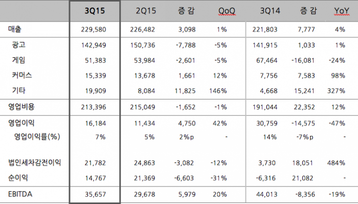 전년동기대비로는 97.8% 성장한 결과다. 광고 플랫폼 매출은 1429억원으로 계절적 비수기의 영향에 따라 전분기대비 5.2% 감소했으나 연간 꾸준한 모바일 광고 매출의 성장에 힘입어 전년동기대비로는 0.7% 증가했다.