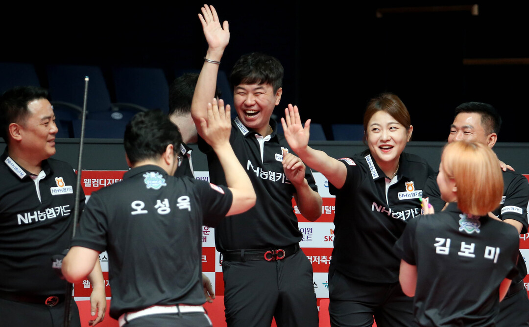 이날 NH농협카드는 하나카드를 상대로 초반 두 세트를 내주고도 풀세트 끝에 짜릿한 역전 승리를 거두었다. 1세트 남자복식(조재호-김현우)과 2세트 여자복식(김민아-김보미)을 응우옌 꾸억 응우옌(베트남)-신정주, 김가영-김진아에 8:11(8이닝), 7:9(11이닝)로 패배, 부진한 출발을 보였다.