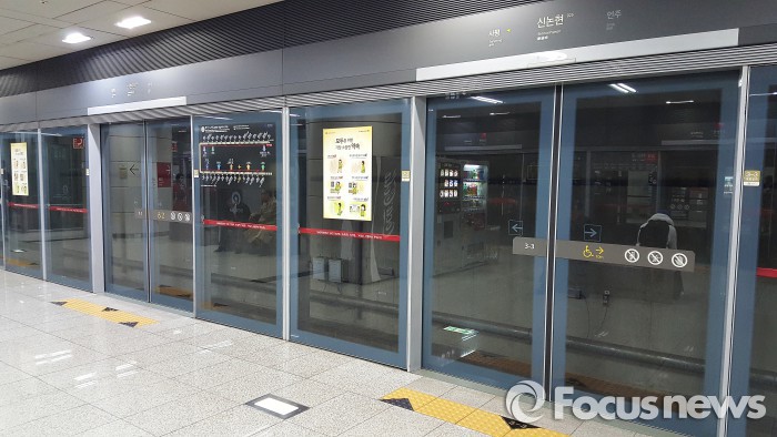 | △ 현대로템이 공급한 서울 9호선 신논현역 승강장 스크린도어 <사진제공=현대로템> |