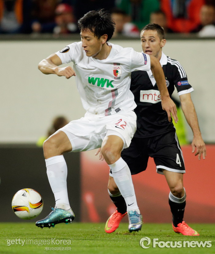 | △ <아우크스부르크/독일=게티/포커스뉴스> 아우크스부르크 소속 지동원이 지난달 2일 새벽(한국시간) 홈에서 열린 파르티잔과의 유로파리그 조별라운드에서 상대 수비수와 일대일 대결을 펼치고 있다. (C)게티이미지/멀티비츠 |