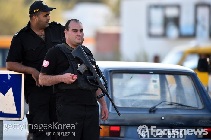 | △ (수스/튀니지=게티/포커스뉴스) 지난 6월27일(현지시간) 무장경찰들이 전날 튀니지의 해변 휴양지 수스의 한 호텔에서 발생한 테러로 경비를 서고 있다. ⓒ게티이미지/멀티비츠 photo@focus.kr |