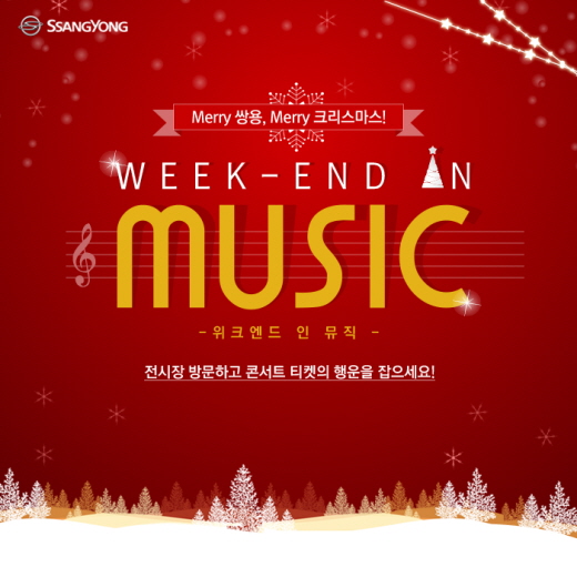 (서울=포커스뉴스) 쌍용자동차가 연말을 맞아 고객감사 이벤트 ‘위크엔드 인 뮤직(Weekend in Music)’을 개최한다.