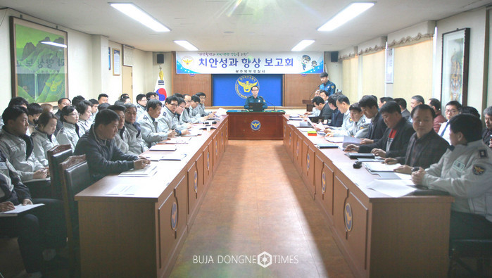 | △광주북부경찰서는 경찰서 각 과장, 지구대장 등 40여 명이 참석한 가운데 '치안종합성과 향상 보고회'를 개최하였다 |