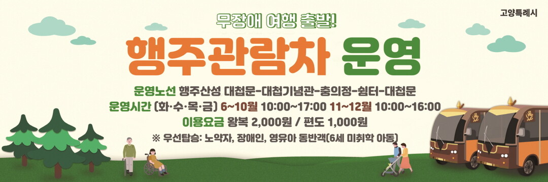 [부자동네타임즈 = 김인수 기자] 고양특례시는 6월 4일부터 행주산성 대첩문에서 충의정 정상까지 약 800m 구간을 운행하는 행주관람차 운영을 시작한다고 밝혔다.