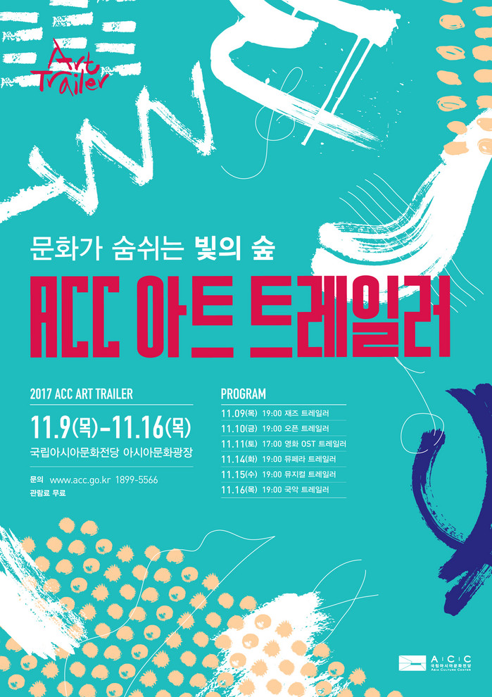 ‘ACC 아트 트레일러’는 장르별 전문가들의 해설과 재즈, 영화OST, 뮤페라, 뮤지컬, 국악 등 다채로운 음악 공연으로 진행된다.