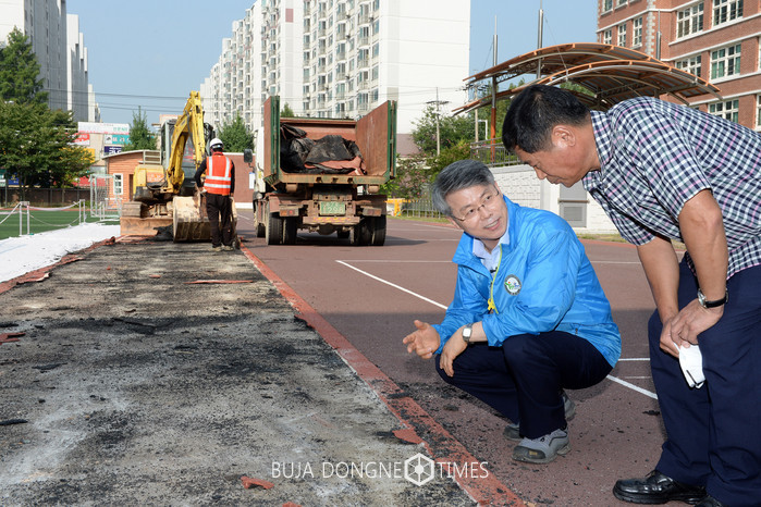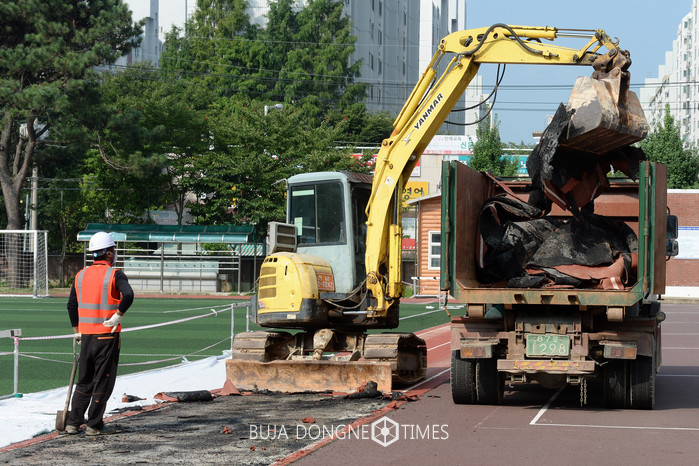 광산구, 납 오염 학교 우레탄 트랙 철거 시작