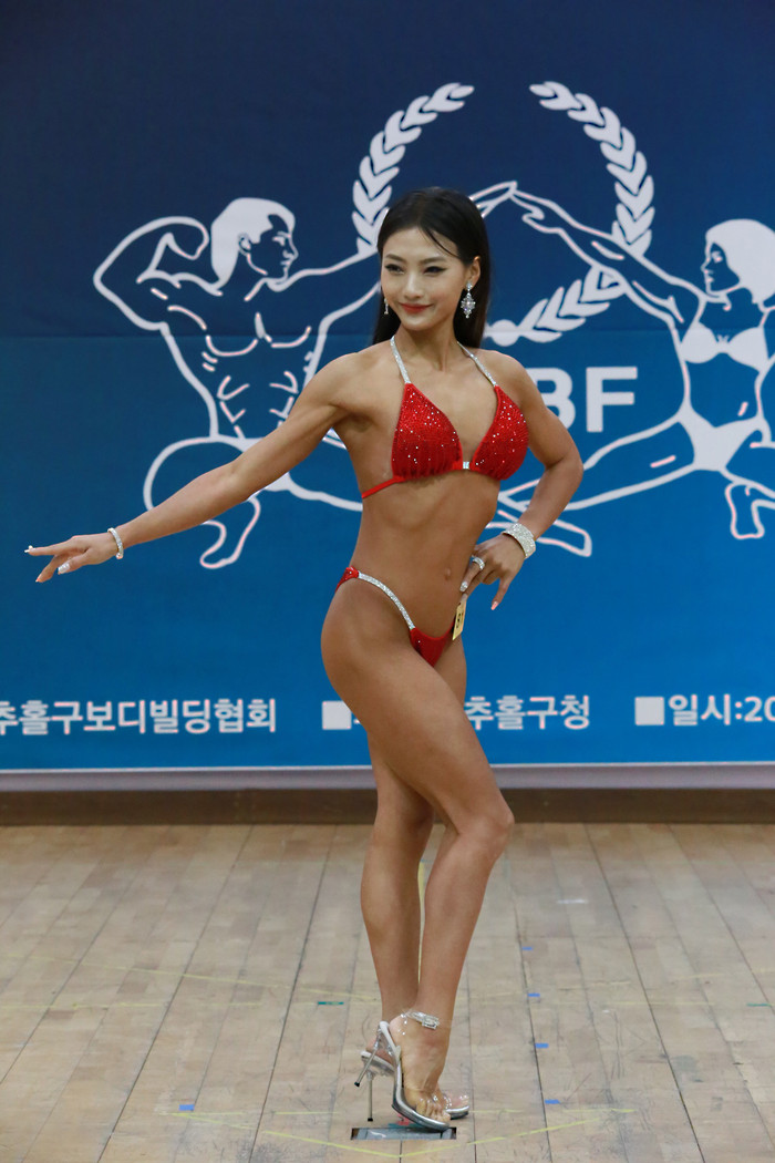[사진설명] 제2회 인천광역시 미추홀구청장배 보디빌딩&피트니스 선발대회 무대에서 자신에 매력을 표출하고 있는 이수정 선수.
