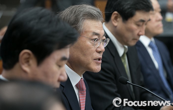 | △ 문재인 새정치민주연합 대표가 지난 27일 오전 서울 여의도 국회에서 열린 최고위원, 중진의원 연석회의에 참석해 모두발언을 하고 있다. <사진제공=포커스뉴스> |