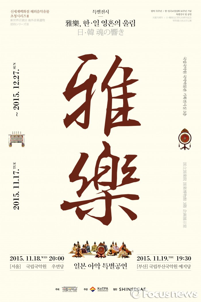 | △ 신세계가 공식후원하는 ‘아악, 한·일 영혼의 울림’특별 전시회가 11월17일부터 12월27일까지 국립국악원에서 열린다. 누구나 무료로 관람할 수 있다.<사진제공=신세계> |