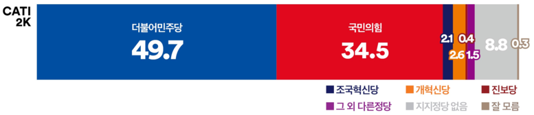 정당지지도: 전화면접조사 결과 ‘더불어민주당’ 47.8%로 상승세, ‘국민의힘’과 격차 16.2%p ‘국민의힘’ 수도권·남성층 이탈하며 격차 커져