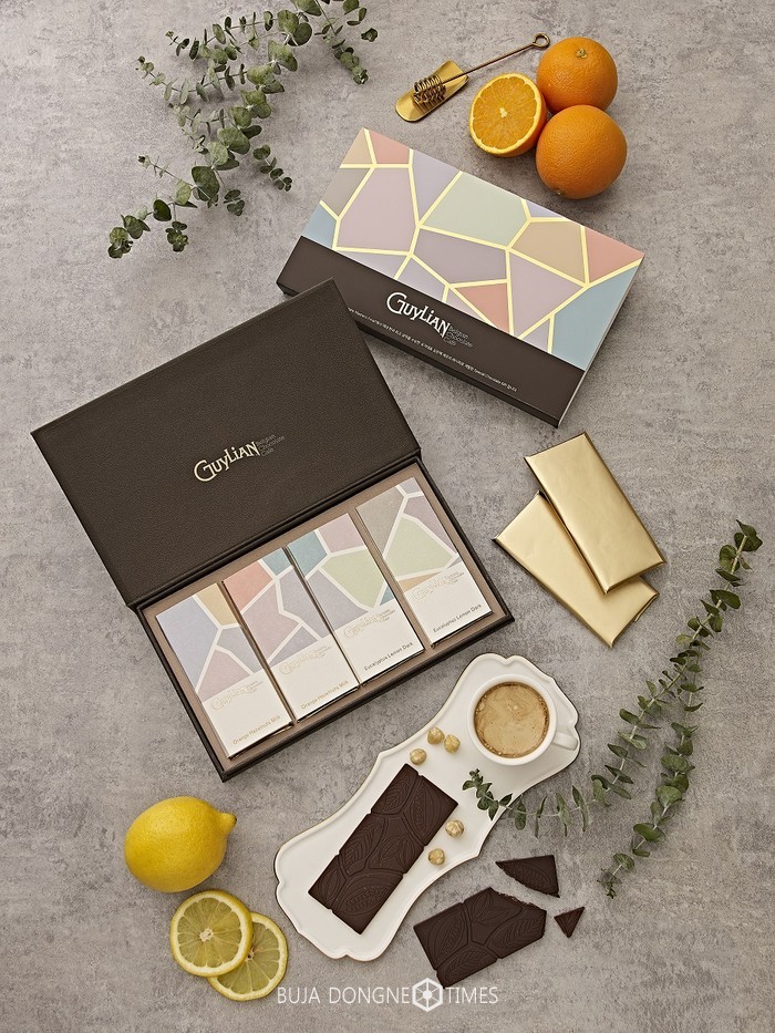 또한 상큼한 오렌지와 밀크 초콜릿, 헤이즐넛 등이 어우러진 ‘오렌지 헤이즐넛 밀크 초콜릿’과, 유칼립투스와 레몬의 상큼함을 다크초콜릿에 입힌 ‘유칼립투스 레몬 다크 초콜릿’이 각 2개씩 구성됐으며 세트당 3만 5000원에 판매한다.