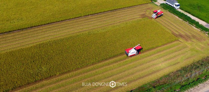 [논산=부자동네타임즈 이현석] 논산시 채운면 들녘에서 풍년맞이 첫 벼 수확이 시작됐다. 지난 16일 논산에서 첫 수확한 벼는 논산시 채운면 용화2리 장석구씨 농가의 논 2만8천㎡면적의 ‘조평벼’이다.