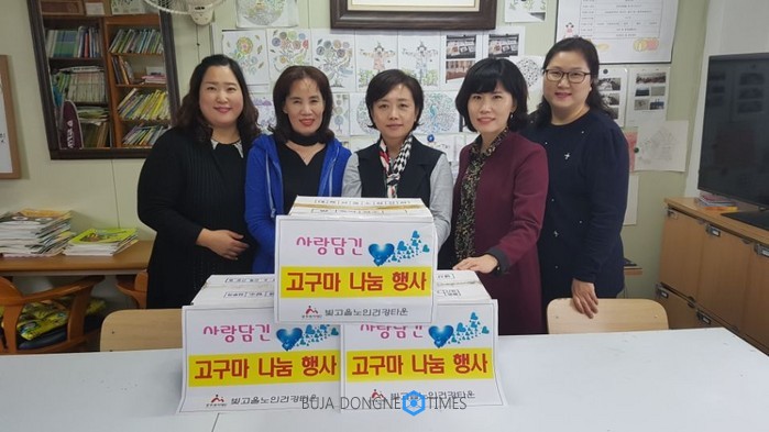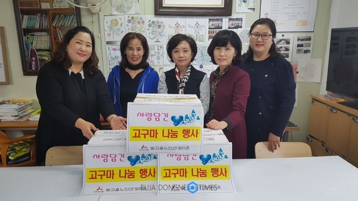 이번 나눔행사는 '빛고을 텃밭정원 만들기' 체험프로그램에 참여한 30여 명 어르신들이 여름 내 땀 흘리며 정성껏 키운 친환경 농산물인 고구마 60 상자를 기증한데서 비롯됐다.