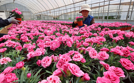 [부자동네타임즈 = 이의수 기자] 28일 인천 서구 인천환경공단 청라사업소에서 직원들이 쓰레기 소각열로 온실 재배한 카네이션을 가꾸고 있다. 이 카네이션은 5월 어버이날을 앞두고 인천적십자사, 서구청 등을 통해 복지단체와 주민들에게 무료로 기부할 예정이다. 2026.4.28