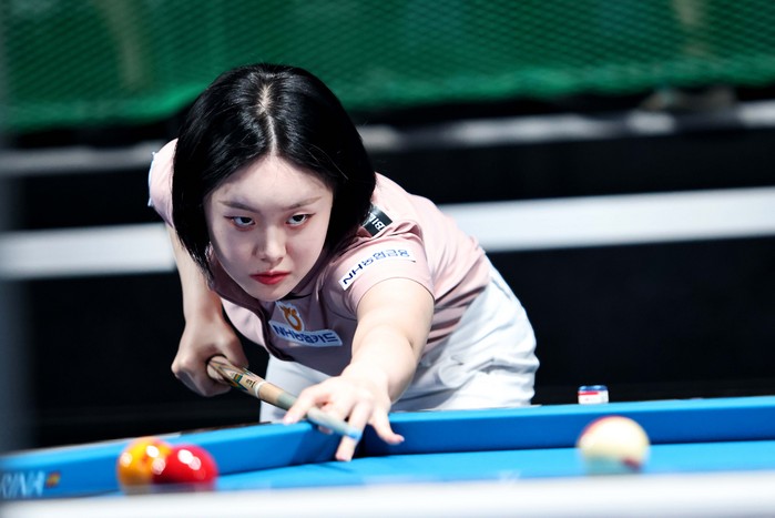반면 한지은(에스와이)은 ‘일본 3쿠션 강호’ 사카이 아야코(하나카드)와 50분간 23:23으로 경기를 마쳤다. 동점 시 비교하는 하이런 승부 결과, 두 번째 하이런 비교 끝에 사카이가 4점, 한지은이 3점으로 아쉽게 고배를 마셨다.
