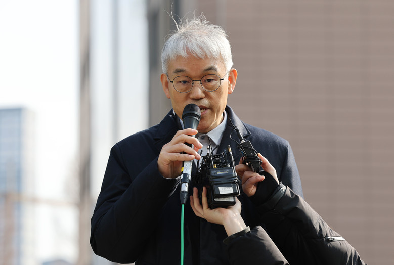 천대엽 법원행정처장이 19일 오전 서울 마포구 서부지방법원에서 윤석열 대통령 지지자들이 서부지법에 벌인 집단 불법폭력 사태 관련 현장점검을 마치고 취재진 질문에 답하고 있다. 2025.1.19