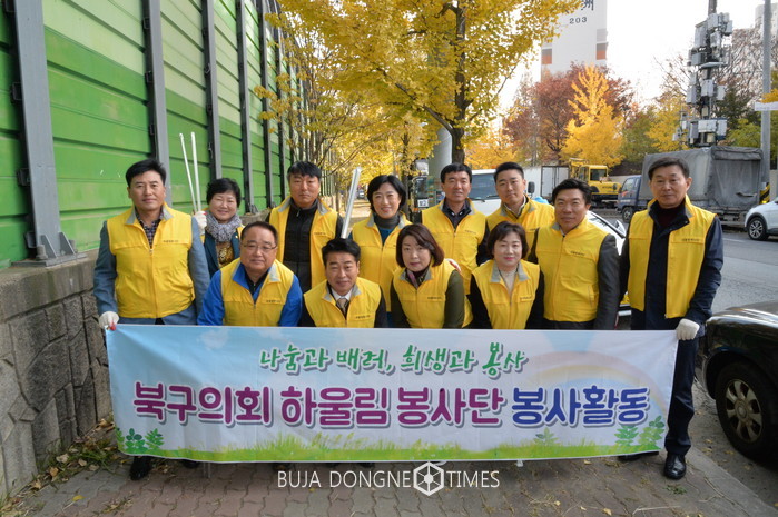 | △광주 북구의회 하울림 봉사단이 관내 문흥동 환경정비를 위한 청소 봉사활동을 실시했다 |