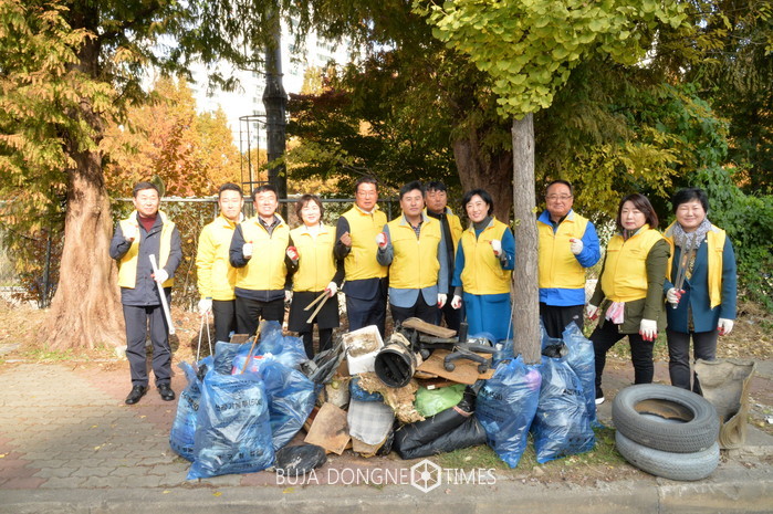 이날 봉사단 소속 구의원 10여 명은 주민들이 깨끗한 환경에서 휴식을 취할 수 있도록 문흥동 대주아파트 뒷편 인도 일대를 말끔히 청소하였다.