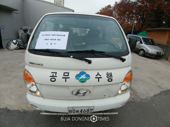 구는 시험장 주변 교통통제를 위해 시험장 200m 전방에서 차량 진‧출입을 통제하고 주차를 일제 금지할 계획이다. 시험장 주변 2km 이내 간선도로를 집중적으로 관리하고 교통경찰관과 교통 지도요원을 조기 배치해 시험장 주변 불법 주정차를 지도·단속하는 등 교통정리에 대비할 예정이다. 마을버스는 오전 6시부터 시험장 입실시간인 오전 8시 10분까지 집중적으로 배차한다. 구와 19개 동에서는 행정차량을 활용해 수험생을 긴급 수송한다. 행정차량에는 ‘수험생 수송지원 차량’이라는 인식표가 붙어 있다.