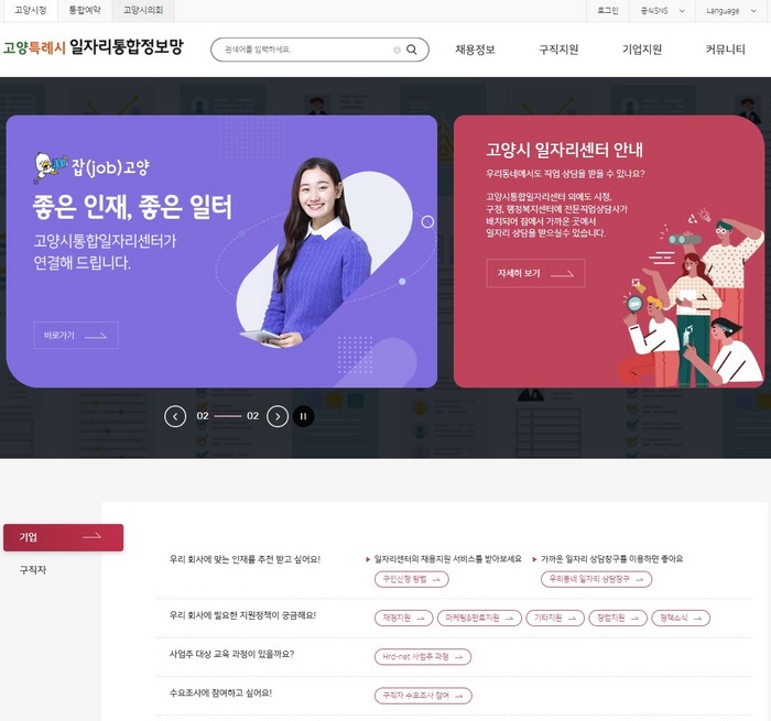 시 관계자는 “이번 통합정보망 전면 개편을 통해 시민들이 ‘살아있는 일자리 정보’를 접할 수 있기를 바란다”며 “더 간편하고 풍부해진 통합정보망을 고양시민과의 소통 창구로 활용해 더욱 신선하고 유용한 일자리 정보를 창출하겠다”이라고 말했다.